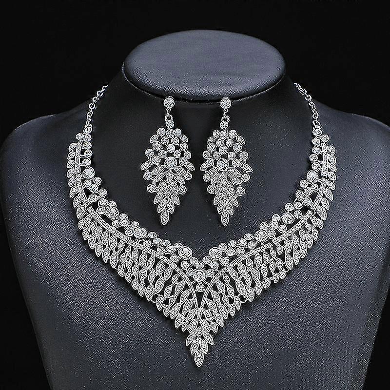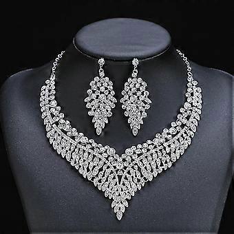 Alloy Clavicle Chain - Palace Temperament Retro Exaggerated Crystal Gem Short Necklace Earring Set