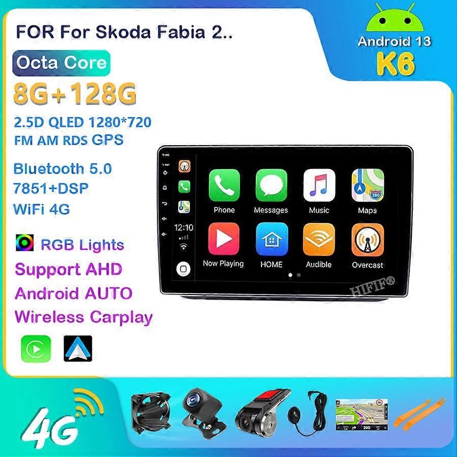 Android 13 DSP CarPlay Car Radio Multimedia Video Player Auto Stereo GPS For Skoda Fabia 2 2008 - 2013 2 din dvd