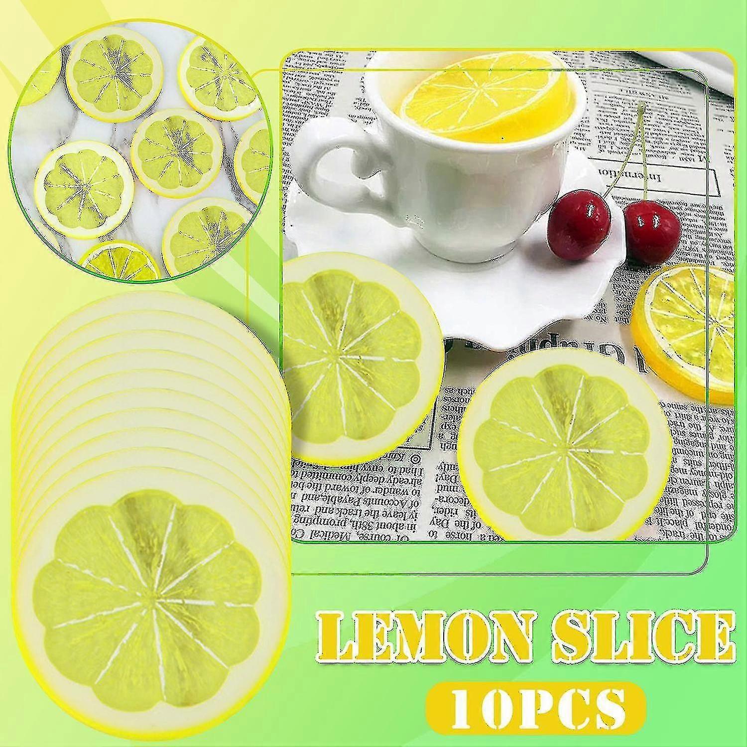 Artificial Plastic Yellow Lemon Slice Realistic Lemon Fruit Decoration (10pc)