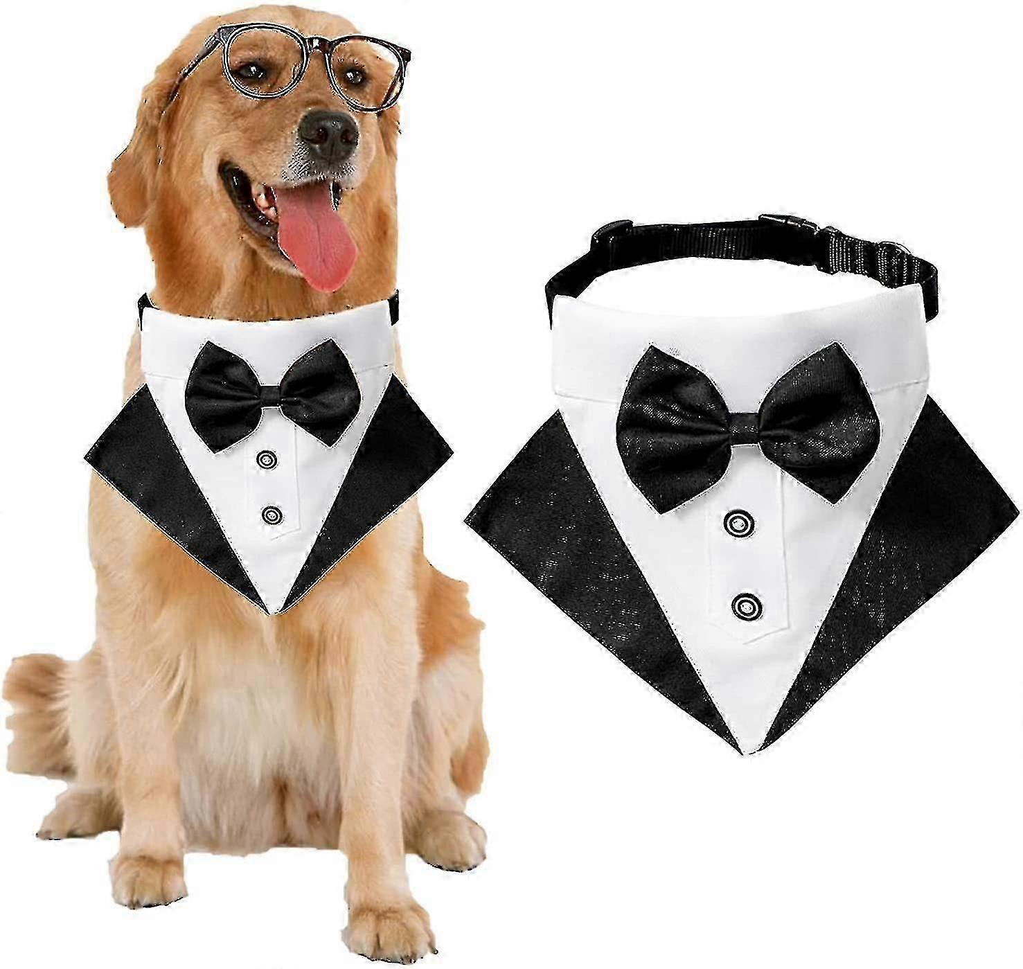 Formal Dog Tuxedo Bandana Dog Wedding Bandana Dog Collar With Bow Tie Adjustable Small