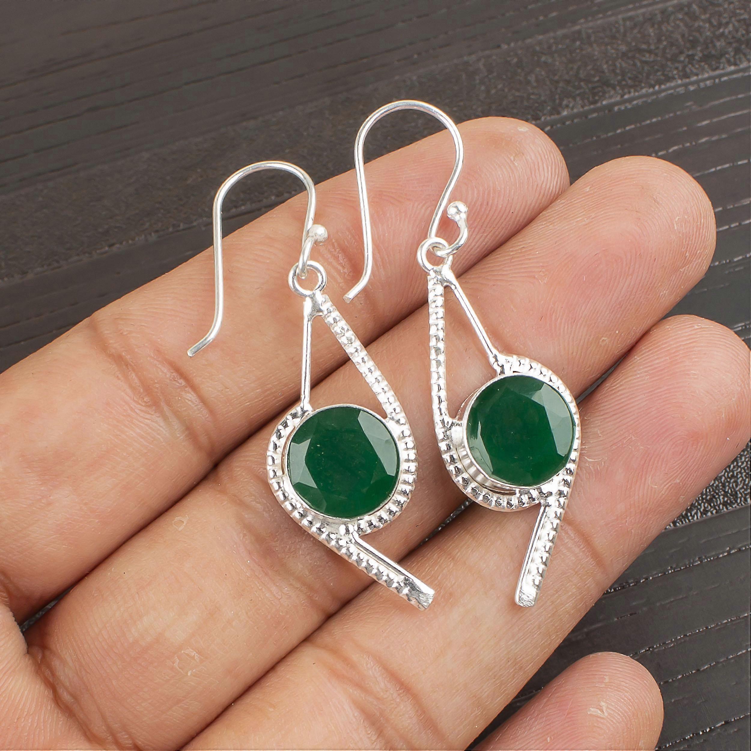 Green Onyx Gemstone Jewelry, 925 Solid Sterling Silver Earrings, Handmade Gorgeous Silver Jewelry For Wedding Gift