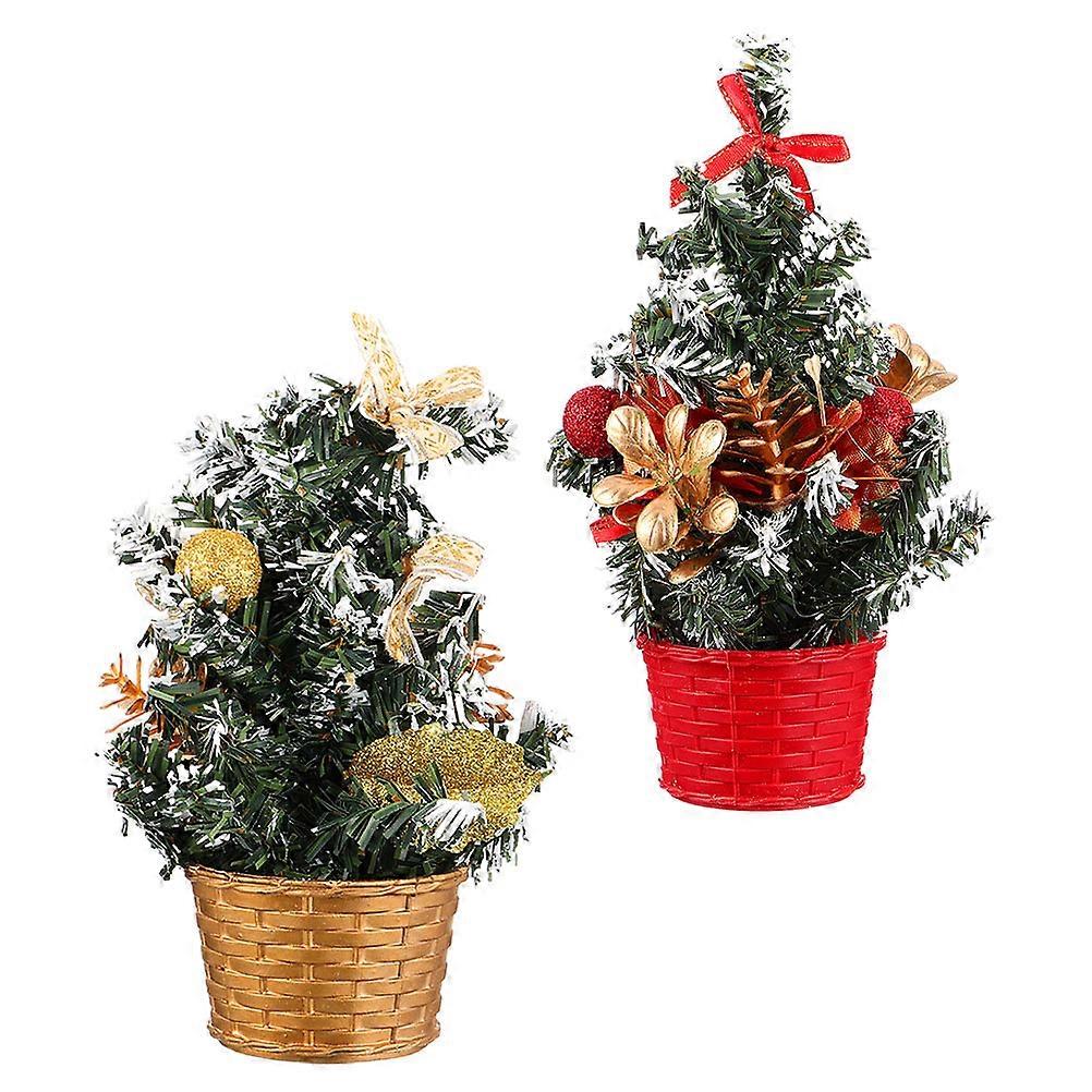 Artificial Christmas Tree 2Pcs Mini Christmas Table Adornments Home Living Room Office 20CM Fire-resistant Decorative Item