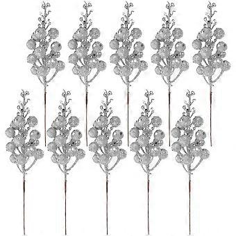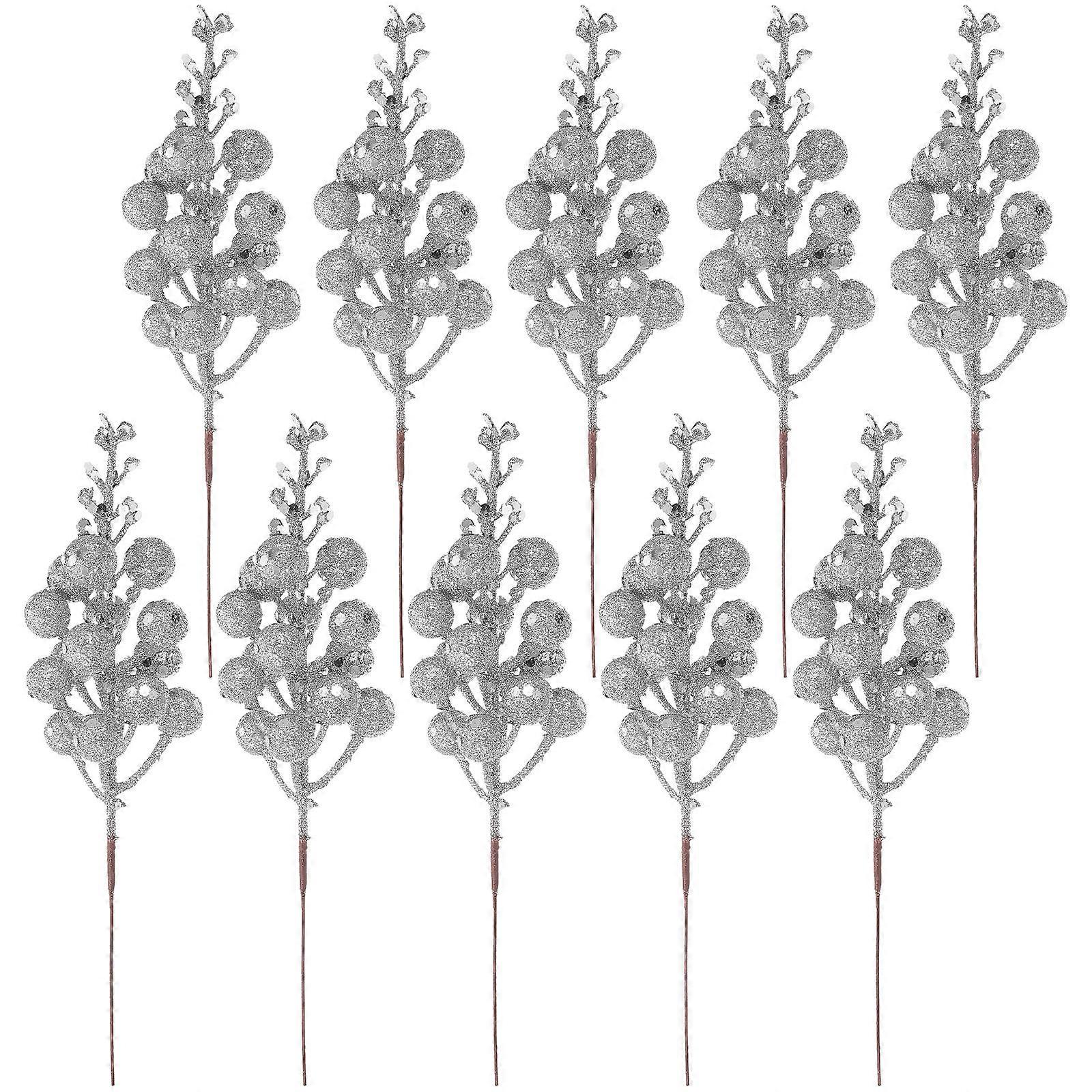 Christmas Tree Artificial Berry Stems 50 Pcs Fake Decoration For Winter Holiday Floral Arrangement In Silver