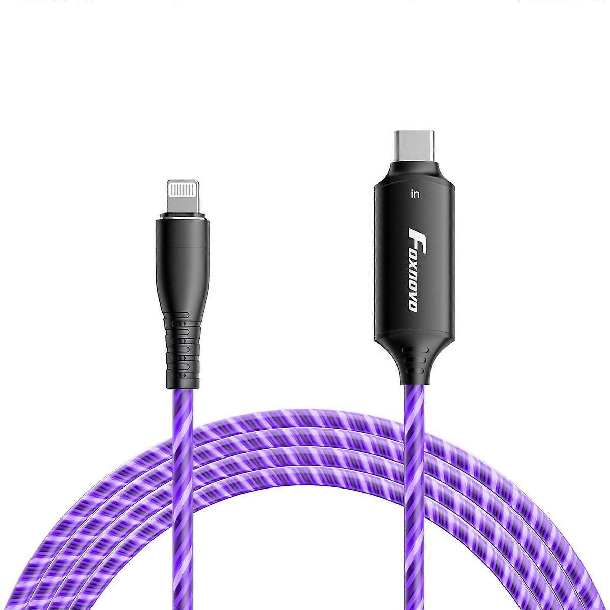 Type C Charging Cable LED USB C Fast Charging for Devices General Users Purple 100cm PVC ABS Material 1Pcs