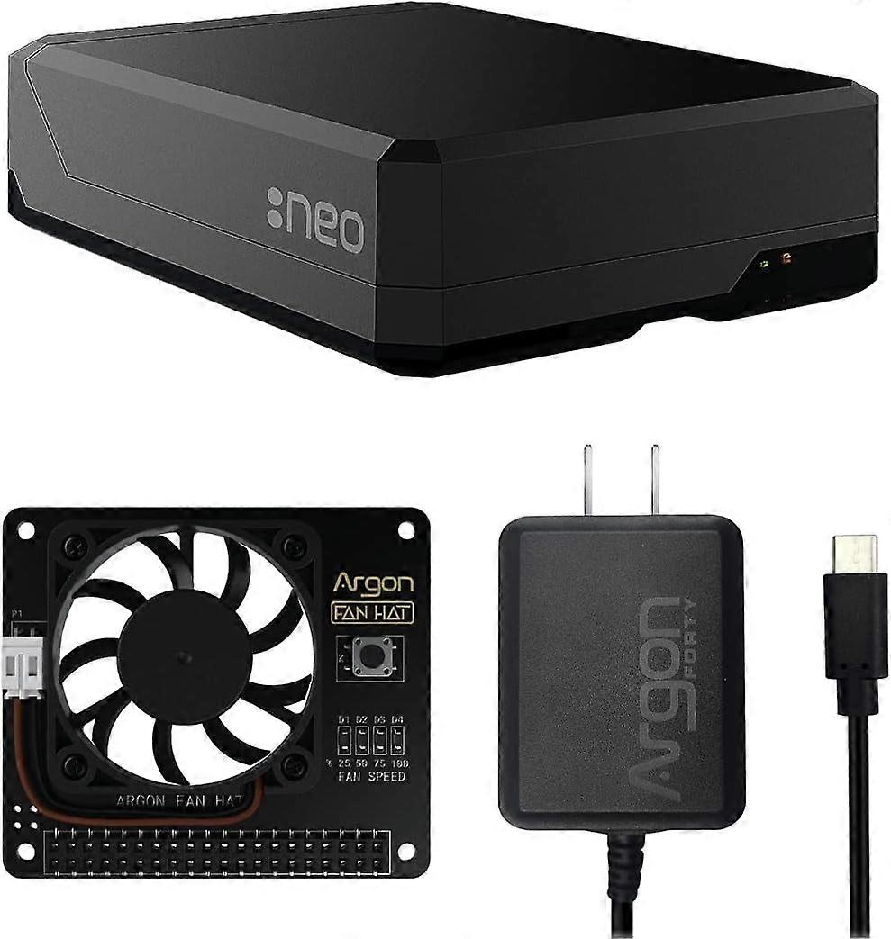Argon NEO Case with Fan HAT and Power Supply (Type-C) for Raspberry Pi 4 | Supports Cooling Fan, Camera, and LCD