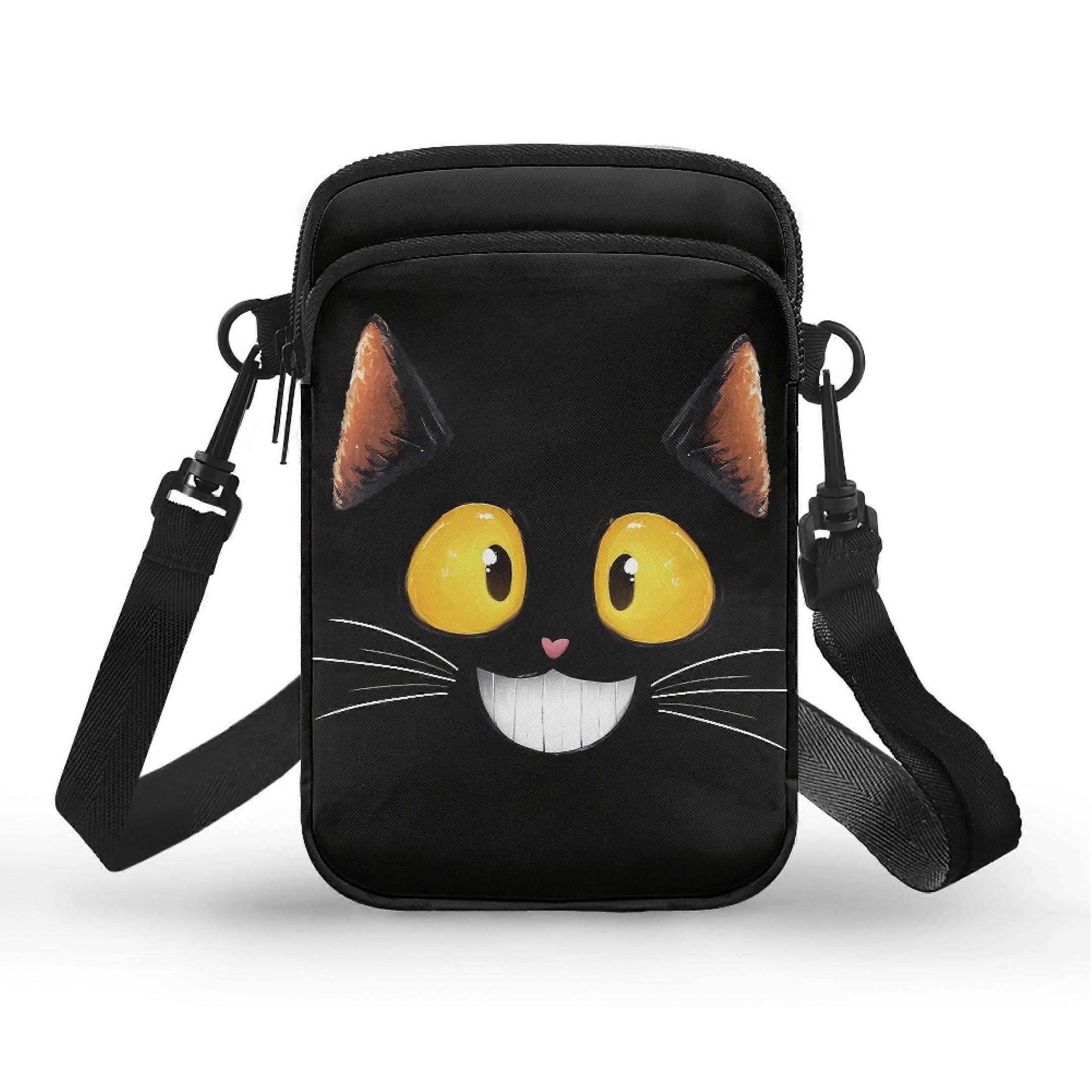 Cat Pattern Sling Bag, Polyester with Shoulder Strap for Adults