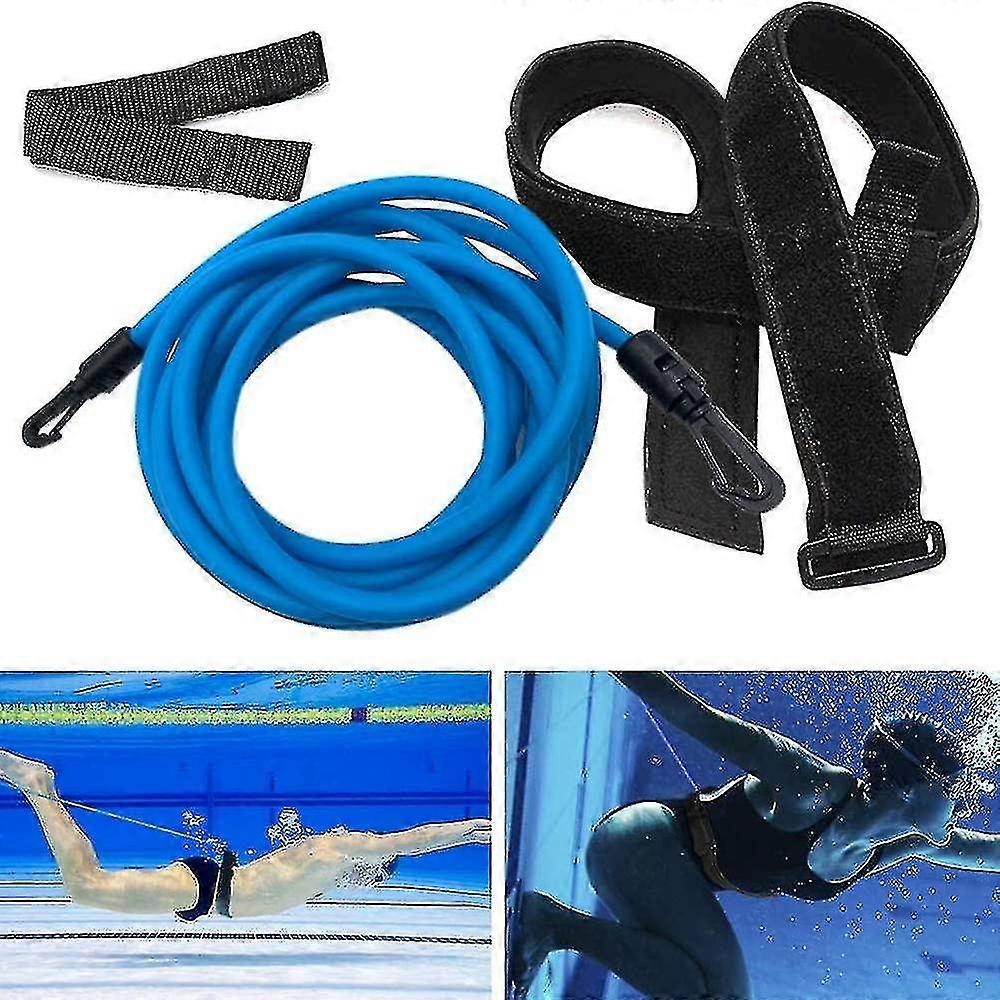 Swimming Resistance Belt Swim Training Band Strap Durable Resistent Elastic Swim Pool Backyard Garden Square(1set,blue) DXET