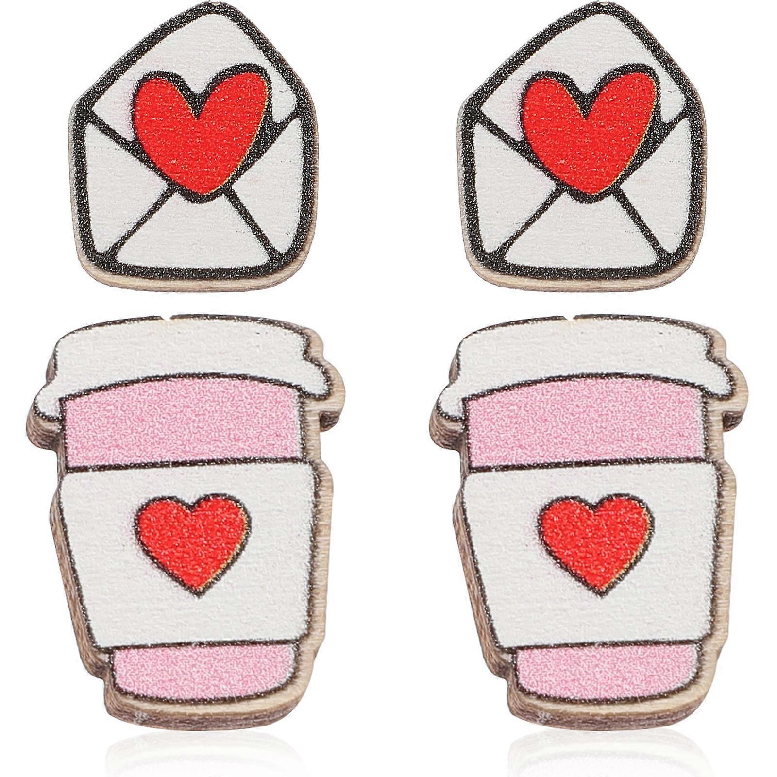 Women Heart-Shaped Ear Studs Valentine's Day Design 4 Pairs Essential Fashion Accessories