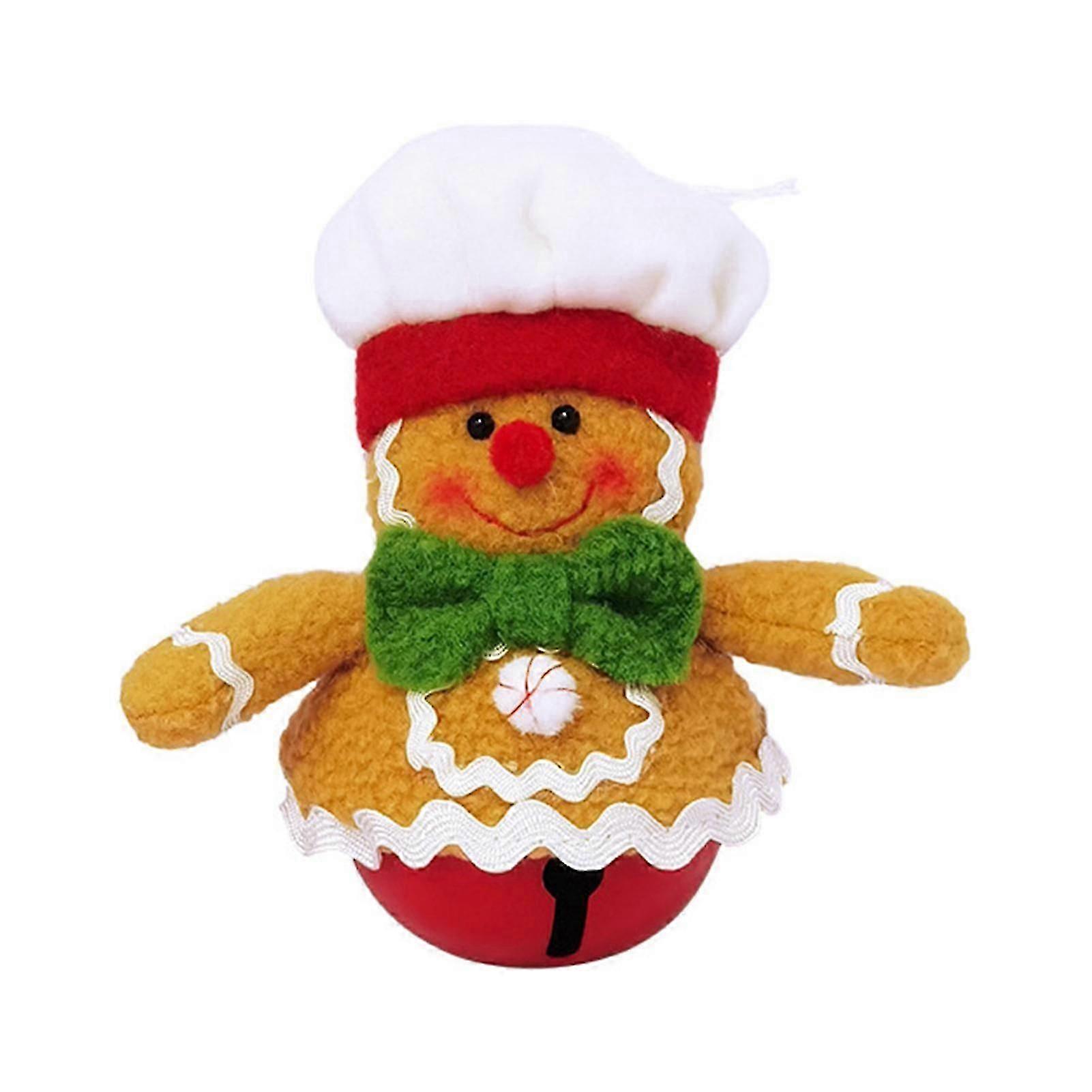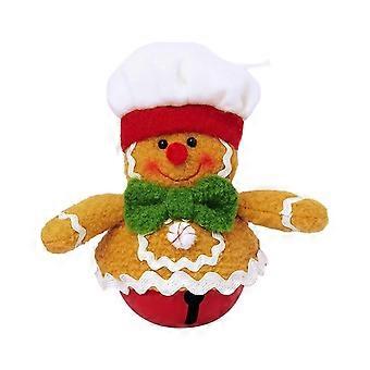 Christmas Gingerbread Man Bell Ornament Plush Gingerbread with Chef Hat Bowknot Figure Xmas Tree Hanging Bell for Tree Window Table Decor -DF