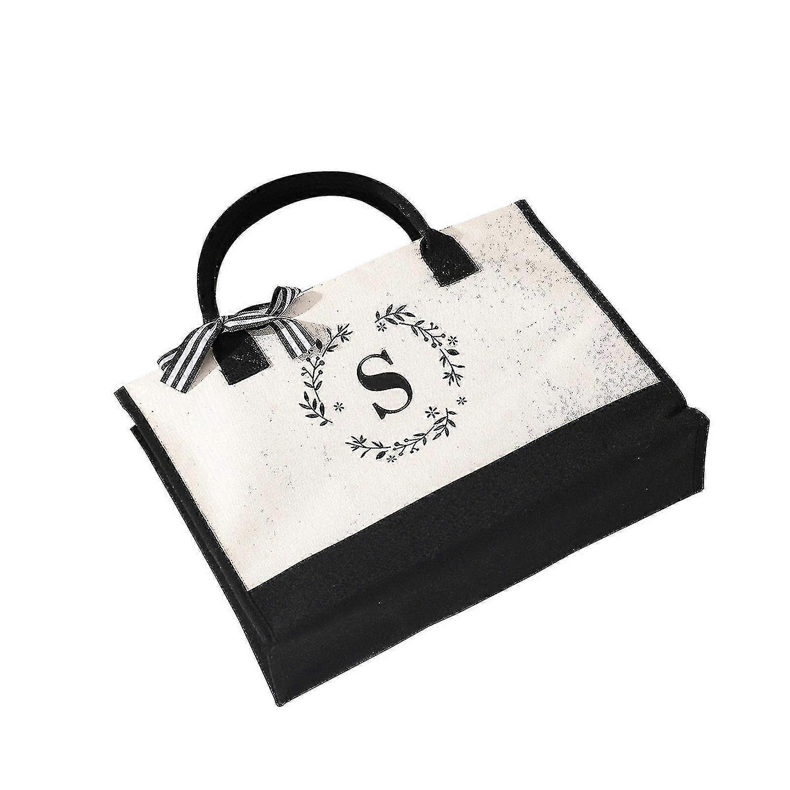 Classic Black And White Initial Tote Bags, Personalized Gifts For Women(49*43*12cm) C