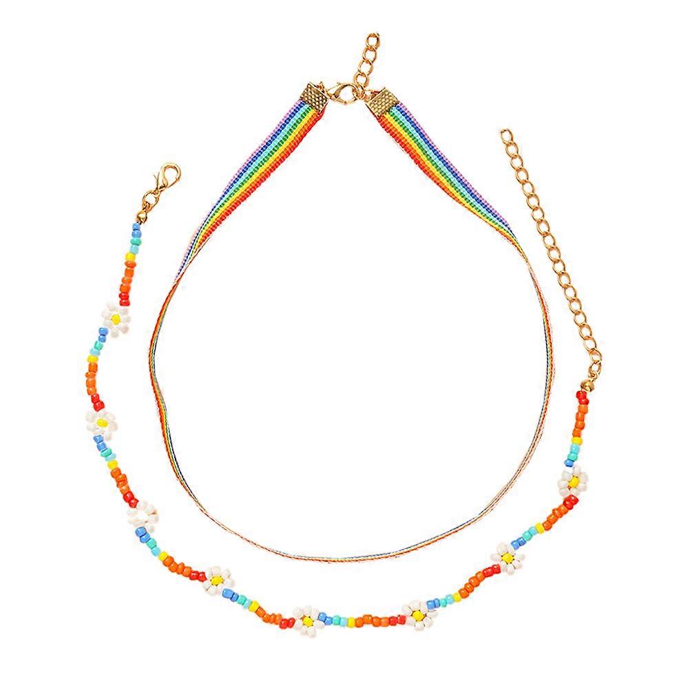 Colorful Beaded Choker Necklace For Women Designed For Summer Occasions Featuring Round Beads 1Set