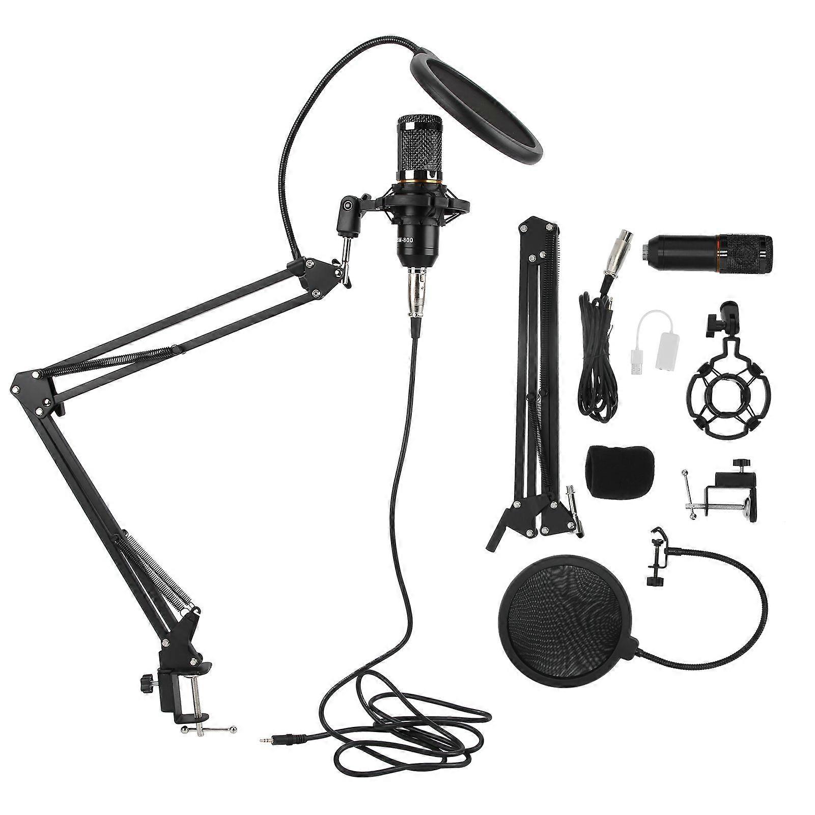Condenser Microphone Kit USB with Flexible Arm BM800 for PC Desktop Notebook Computer(Black Black )