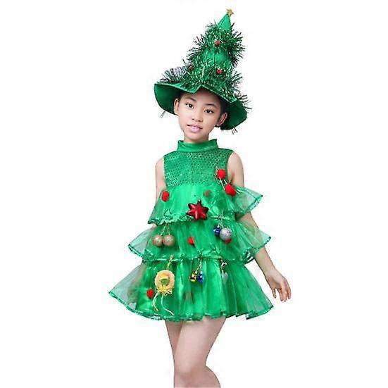 Children Christmas Dress Multi Pendant Decor Scattered Cake Hem Sleeveless Stand Collar A-line Cosplay Stage Show