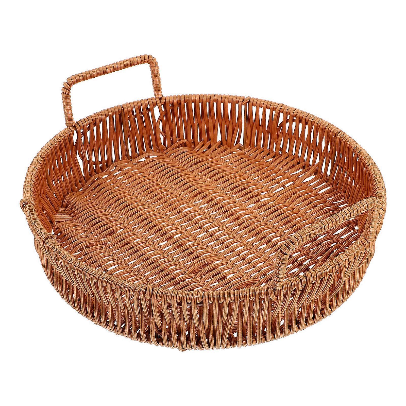 Hand Woven Fruit Basket Imitation Rattan Chocolate 9.82X9.82X1.97IN Serving 1Pcs
