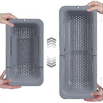 Over The Sink Colander Strainer Basket - Wash Vegetables and Fruits, Drain Cooked Pasta - Extendable - Kitchen Essentials (7.9 W x 14.5-19.5 L x 2.
