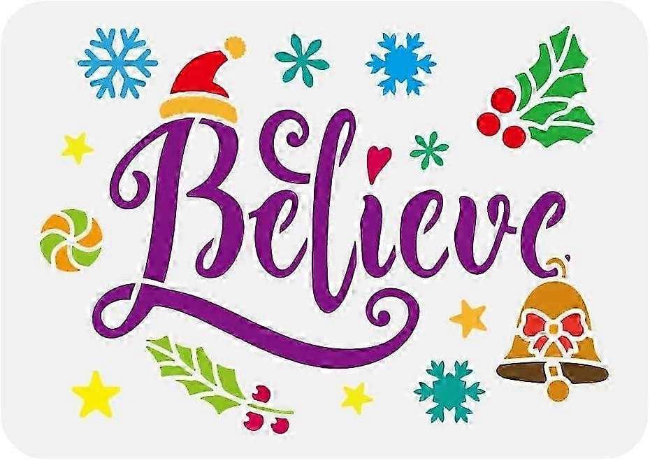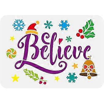 Christmas Believe Stencil 8.3x11.7inch Christmas Hats Holly Snowflakes Stencil Balls Bells Stars Stencil Word Believe Stencil Christmas Decoration Tem