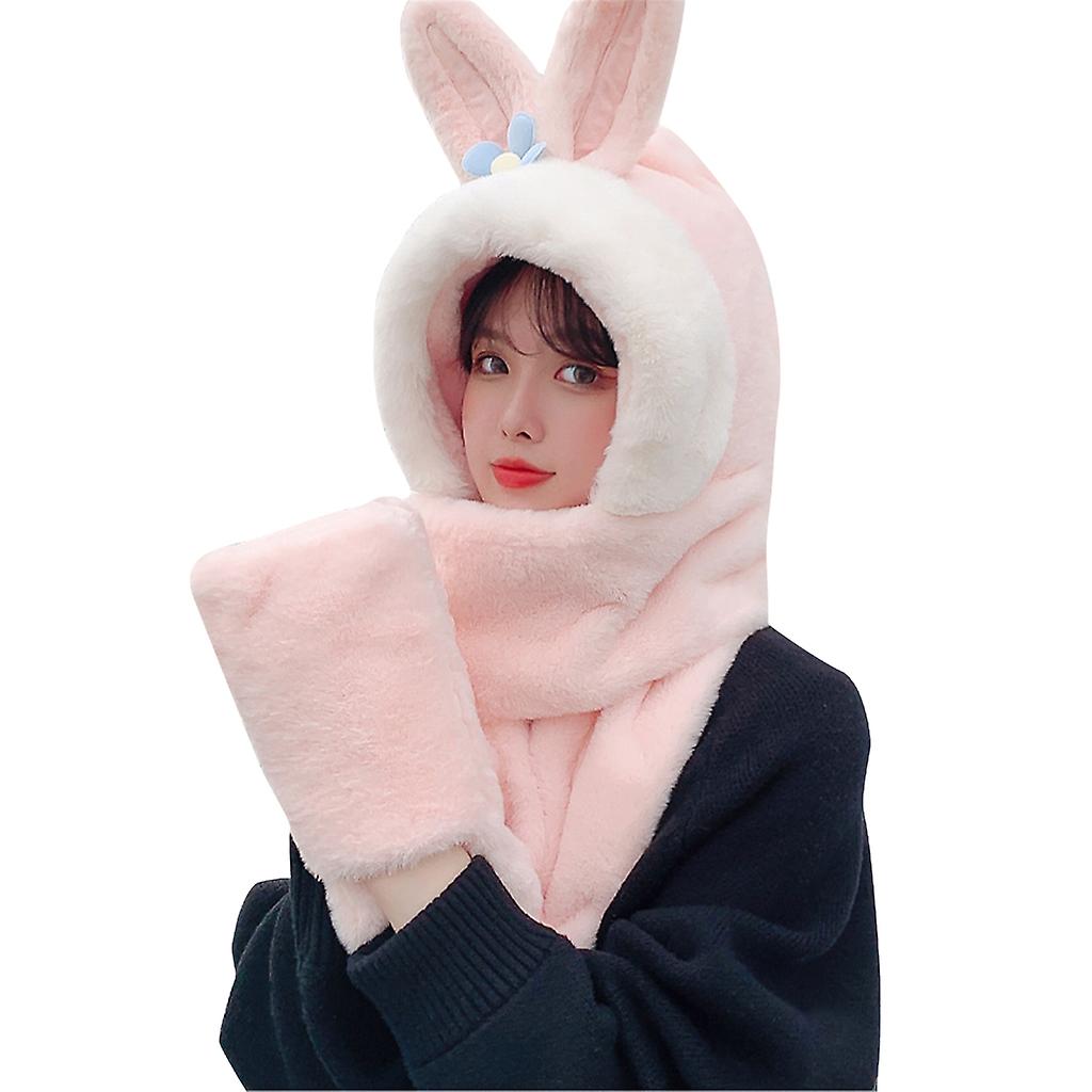 Hooded Scarf Winter Hat Scarf Gloves Set Rabbit Ear Hat Wrap Warm Hat Cap
