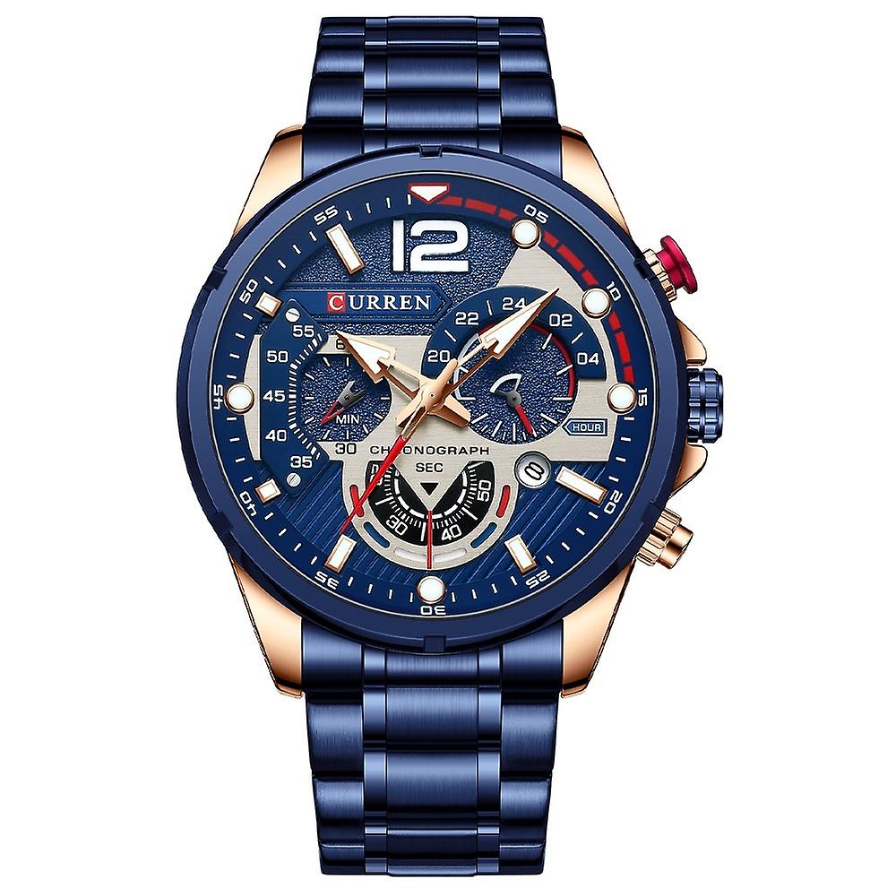 Curren Calendar Men Quartz Watch Rose Shell Blue