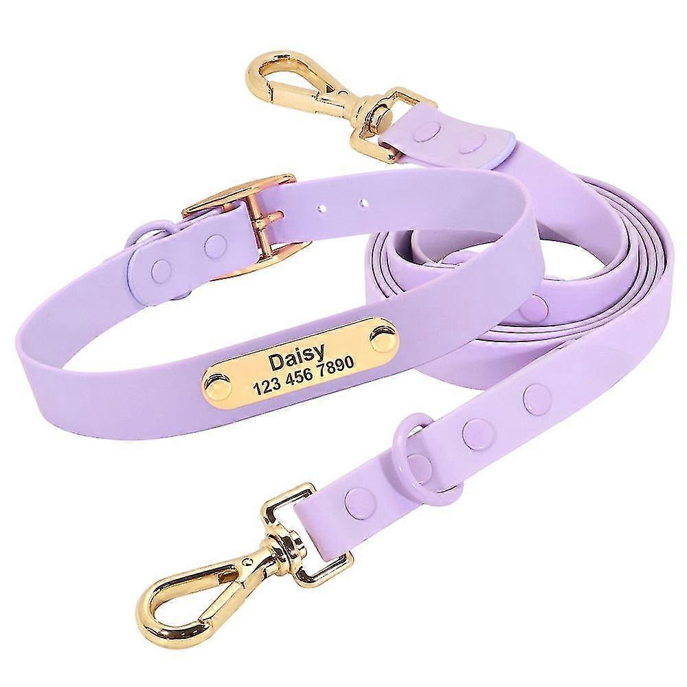 Custom engraved dog collar leash set waterproof pvc dogs cat necklace personalized pet id collars lead rope for small large dogs