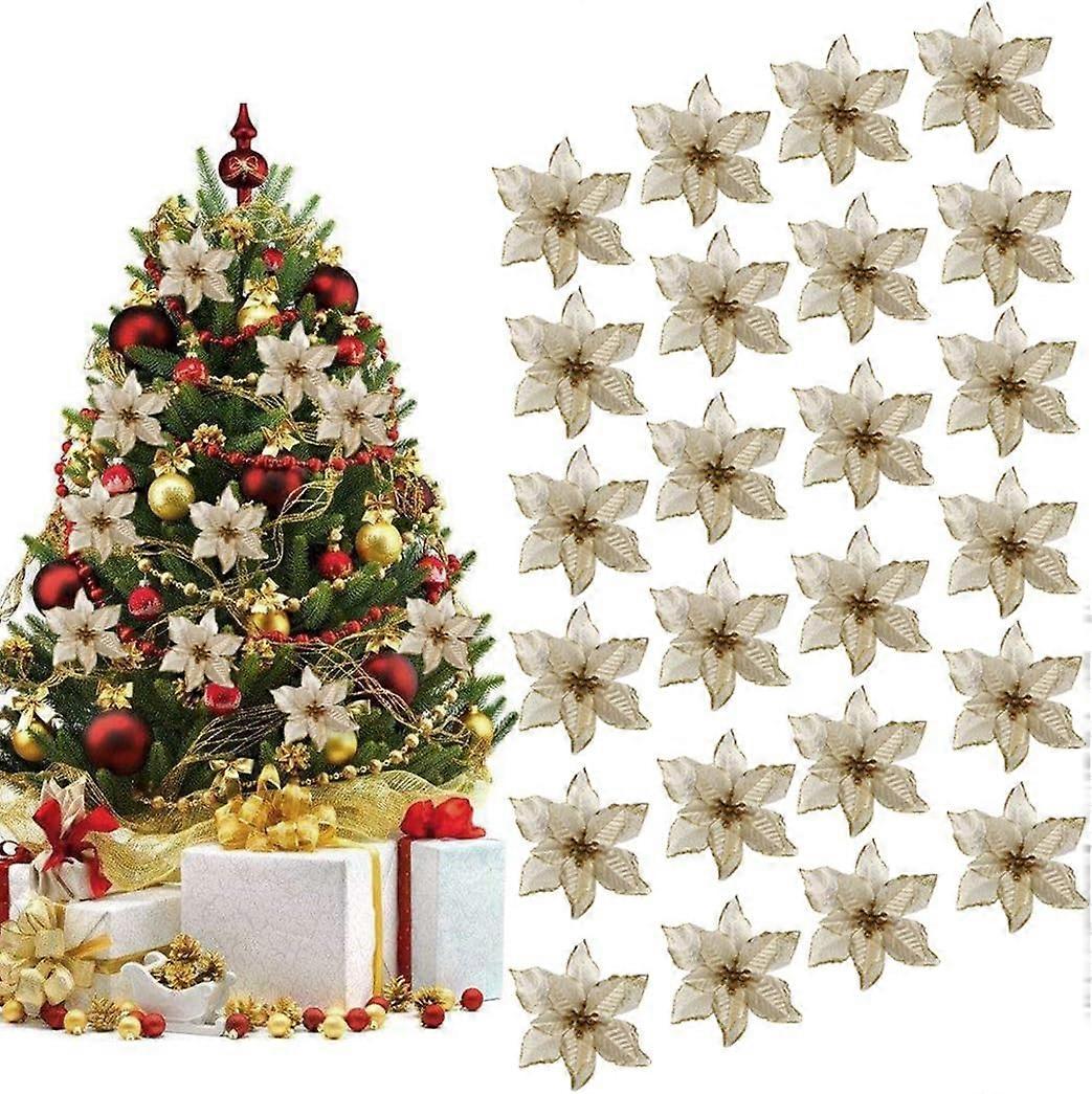 Outgeek Christmas Tree Decoration, 24Pcs Christmas Tree Ornament Set Christmas Decoration Glitter Artificial Christmas Flowers compatible with Wedding