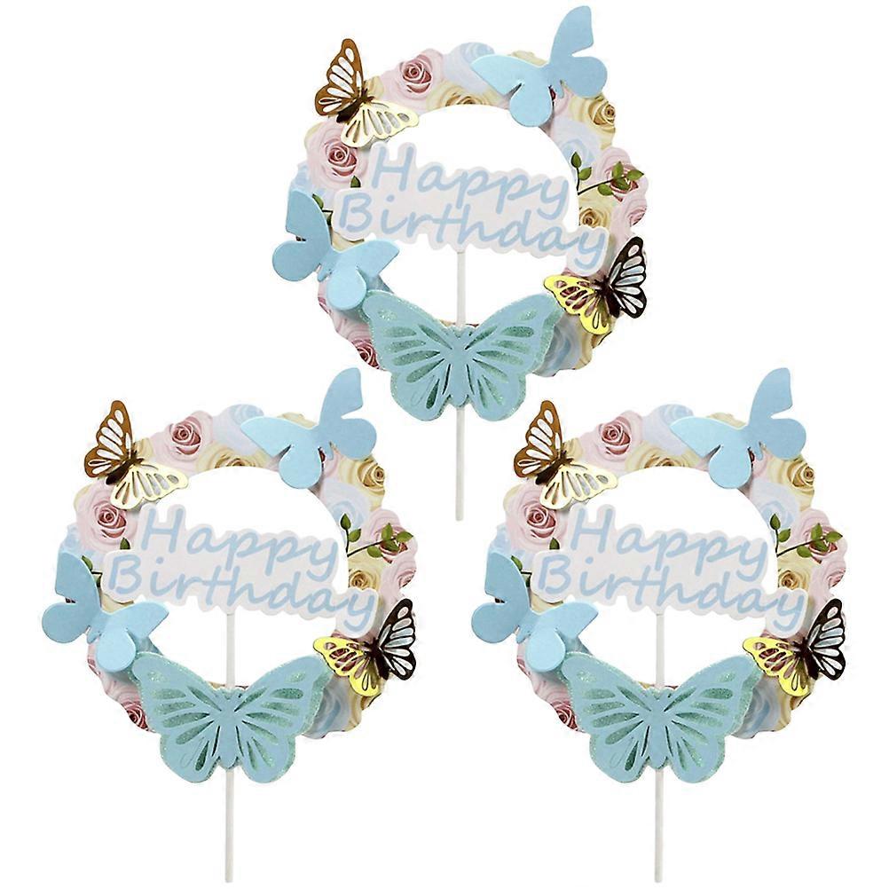Birthday Decorations 3D Flower Cake Toppers For Cupcakes Cheese Blue 6Pcs Great For Girls Birthday Events