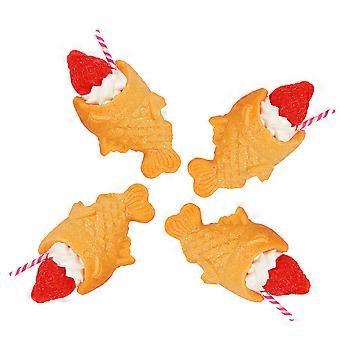 Cartoon Food Pendant Simulation Food Pendants Japanese Snack Model Keychain Pendant Handbags Office Use Fish-shaped Cake 4Pcs