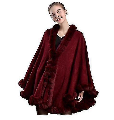 Ladies Cape Rex Rabbit Fur Collar Scarf Shawl Large Lace Hem
