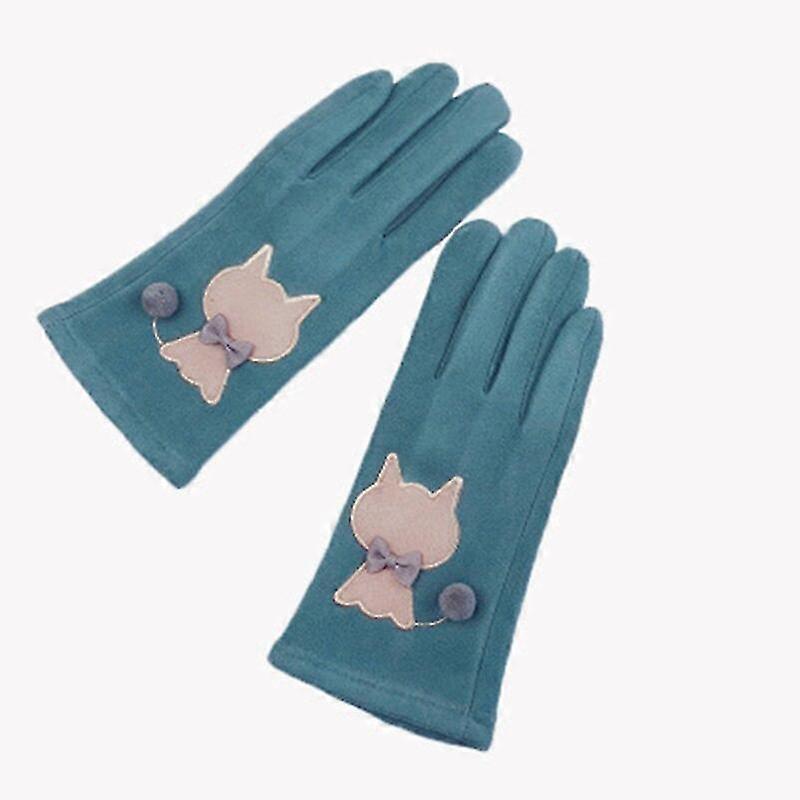 Cute Cartoon Cat Embroidery Plus Velvet Thicken Cycling Warm Mittens Women Winter Suede Leather Touch Screen Driving Gloves