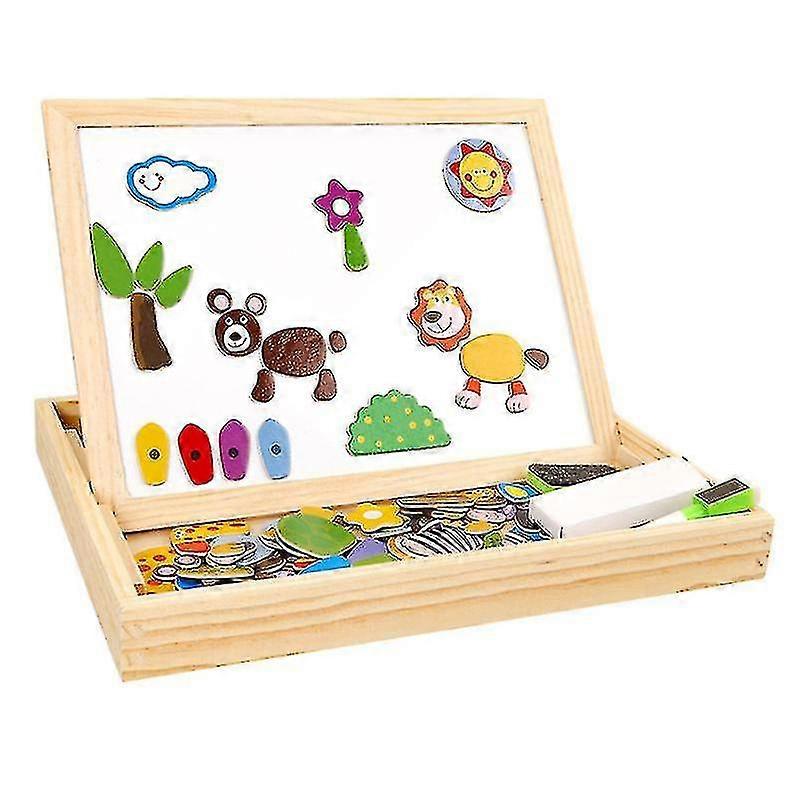 Double-sided Writing Board Magnetic Jigsaw Puzzles Set Multifunctional Wooden Drawing Boards Educational Puzzle Game For Kids (forest Animals)