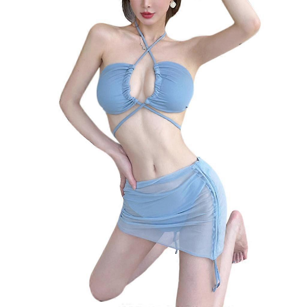 Women 3piece Padded Push Up Bikini Set Swimsuit And Sheer Cover Up Beach-skirt