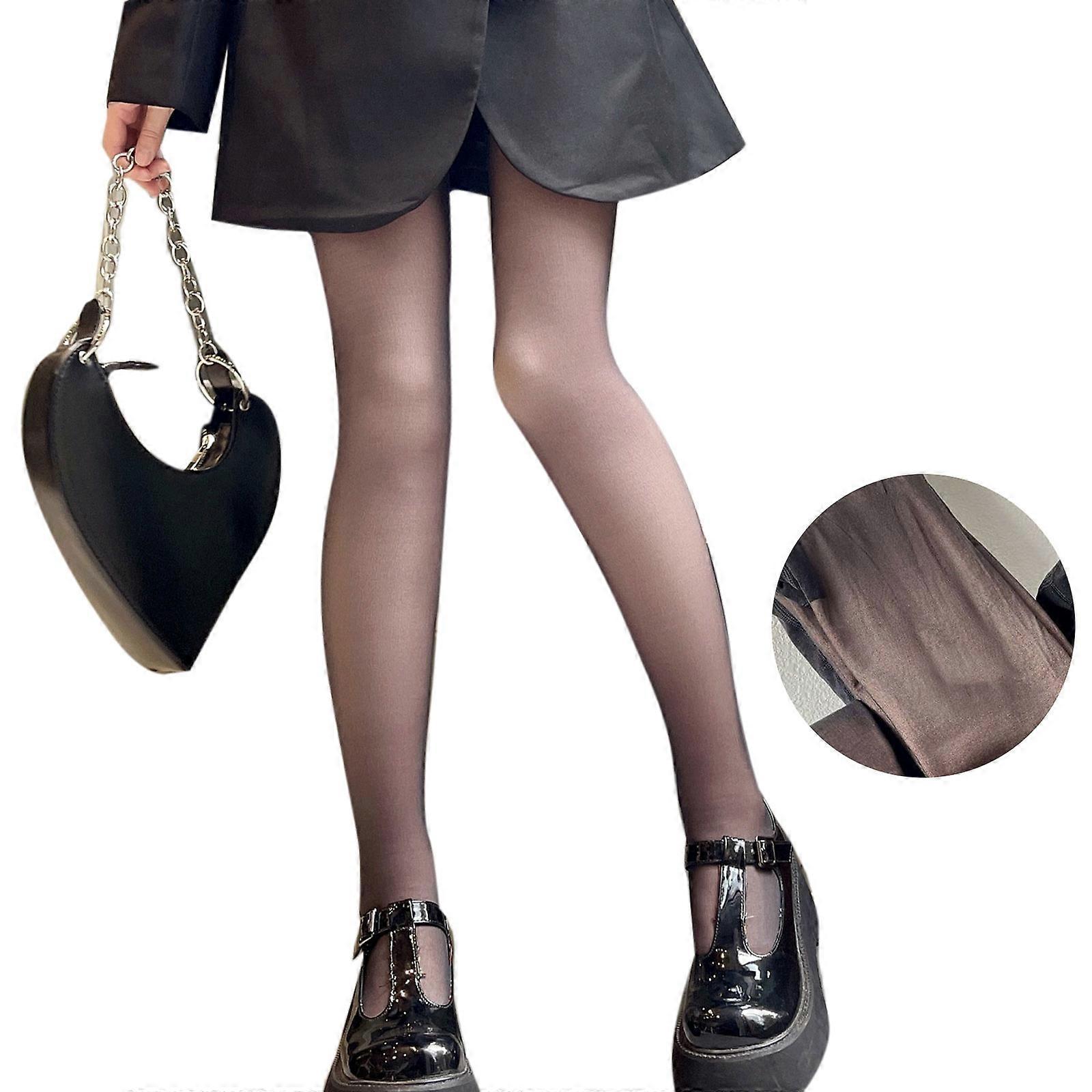 Women Warm Black Tights Fleece Lined Fake Translucent Button Waist Pantyhose