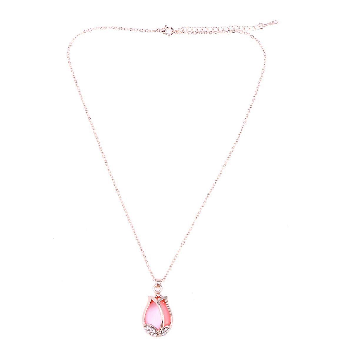 Women Necklace Stylish Cartoon Personality Couple Tulip Flower Pendant Necklace (Rose Golden and Rosy)