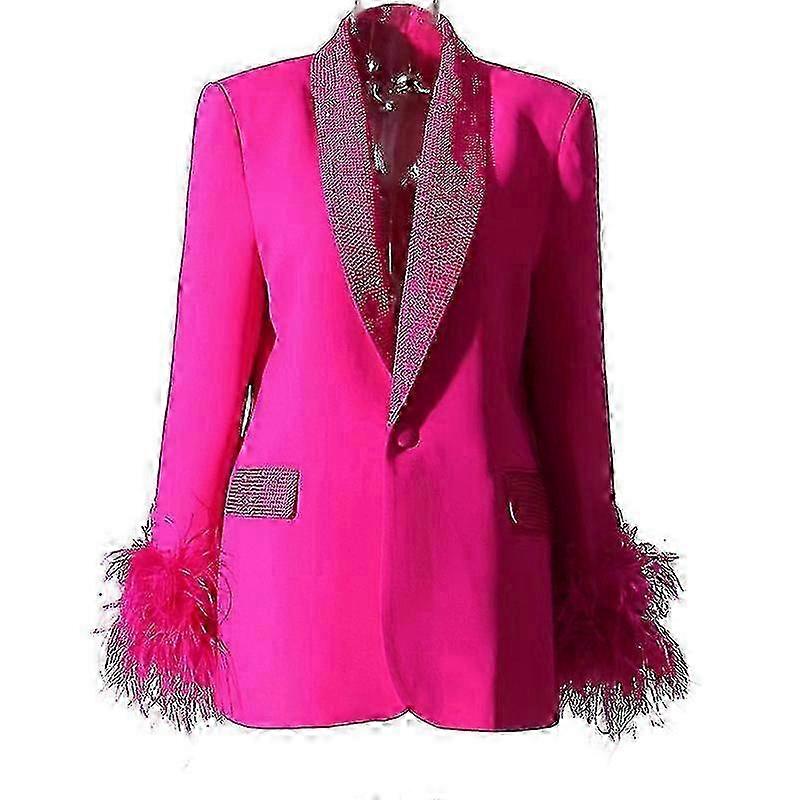Women's Long Sleeve Open Front Blazer Coats Work Office Jacket Pink