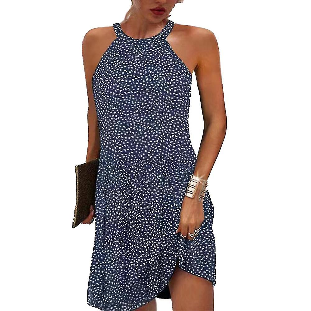 Women's Summer Mini Dress Print Sleeveless Halter Neck Beach Party Dresses -c