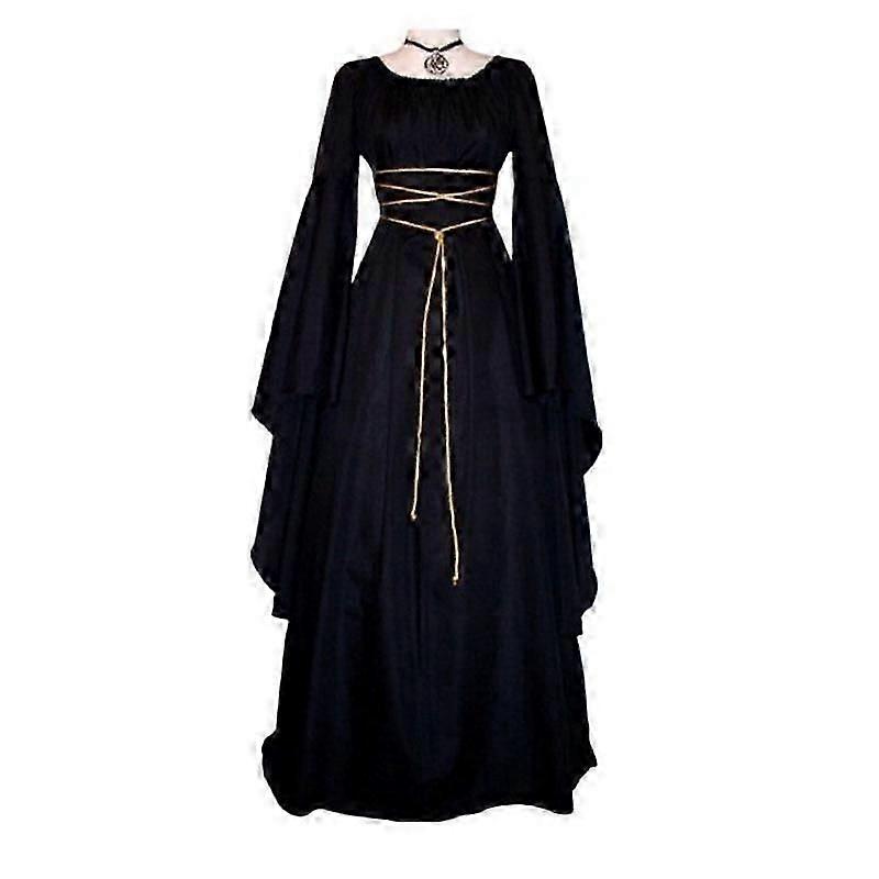 Women Medieval Renaissance Retro Gown Cosplay Costume Long Sleeve Maxi Dress - DSW