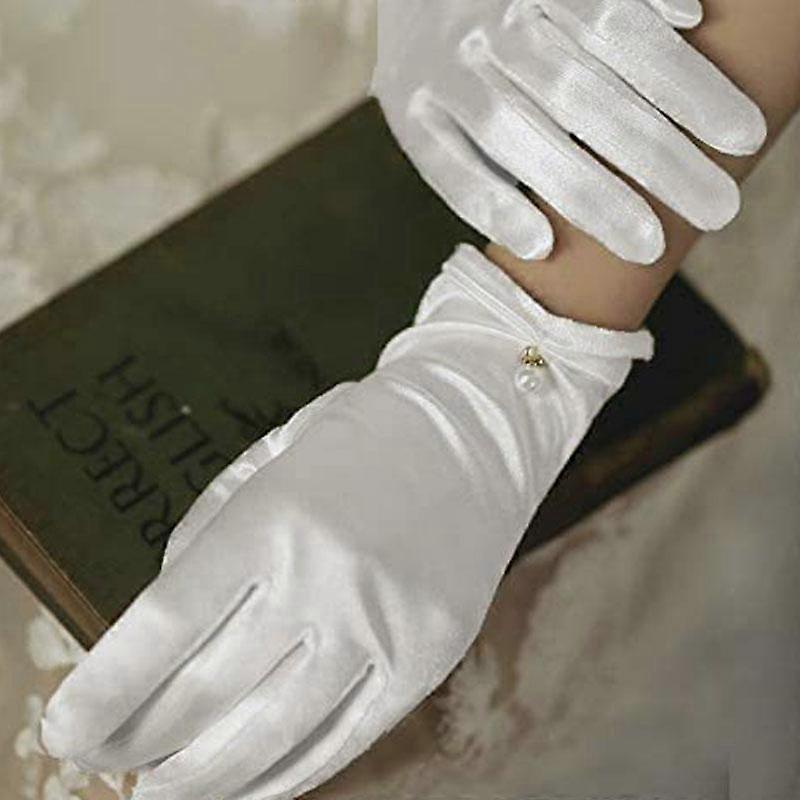 Women Sunscreen Anti-UV Elastic Thin Mittens Driving Full Finger Red White Black Dress Gloves