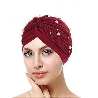 Women's Soft Sleeping Caps Pearls Beaded Hijab Cap Turban Hats Stretch Elegant