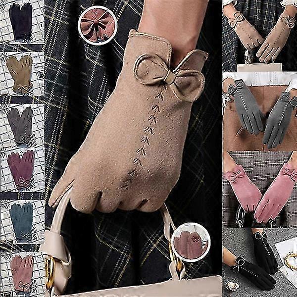 Female Cute Bow Embroidery Thin Section Plus Velvet Touch Screen Driving Gloves