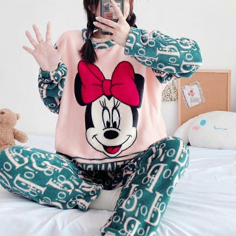 GaiBoSi Cartoon Disney Mickey Mouse Women's Pajamas Winter Knitted Plush Long Sleeve Pants Two-piece Set Loungewear Hello Kitty Pajamas