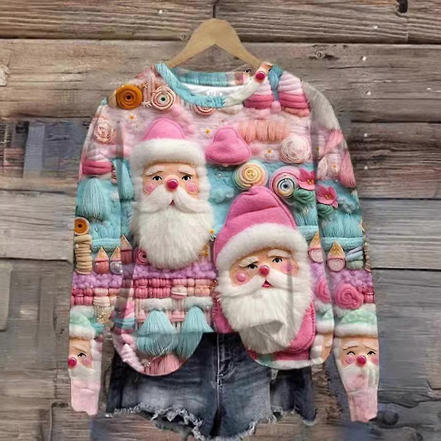 Round Neck Casual Cartoon Santa Claus 3D Print Sweatshirt
