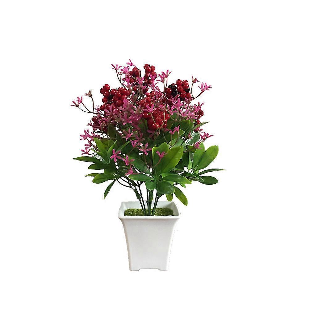 Artificial Potted Plant Decor Simulation Bonsai Flower Pot for Home Office (Berry Fruit)