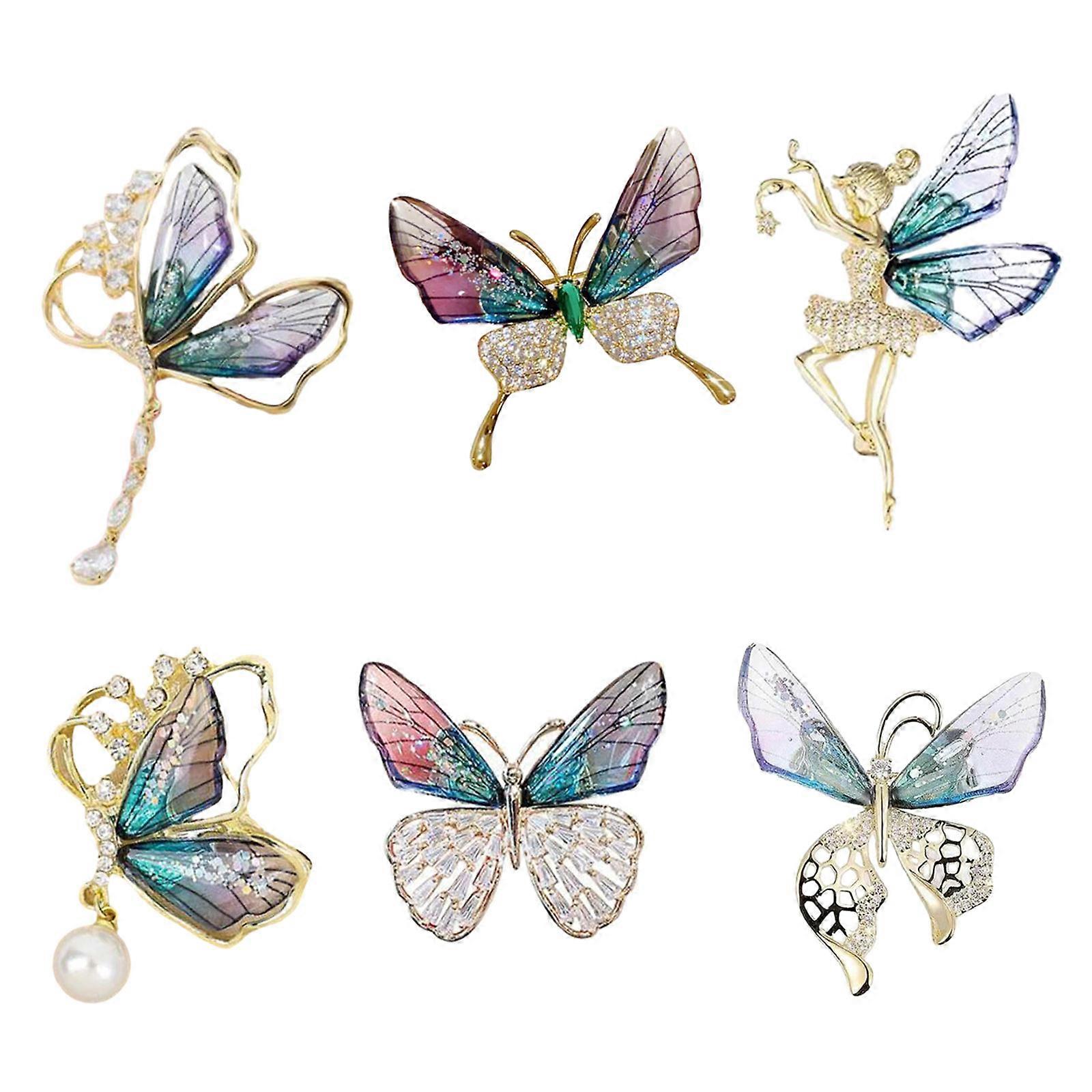 Fashionable Gradient Butterfly Shape Brooches Jewelry Charm Sparkling Crystal Sweater Coat Collar Pin Accessory Ornament