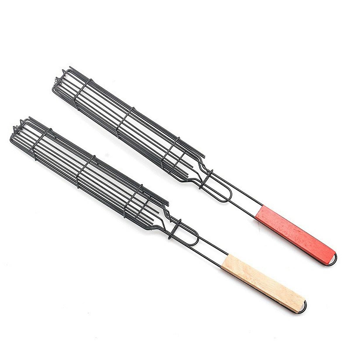 Barbecue Grilling Basket Kabobs Skewers Rack Hot Dog Sausage Rotisserie Bbq Tool