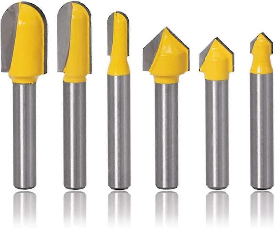 Grooving Router Bit Set,core Box Template Groove Router Bits Woodworking Carving Cutter Tool(6pcs, Yellow)
