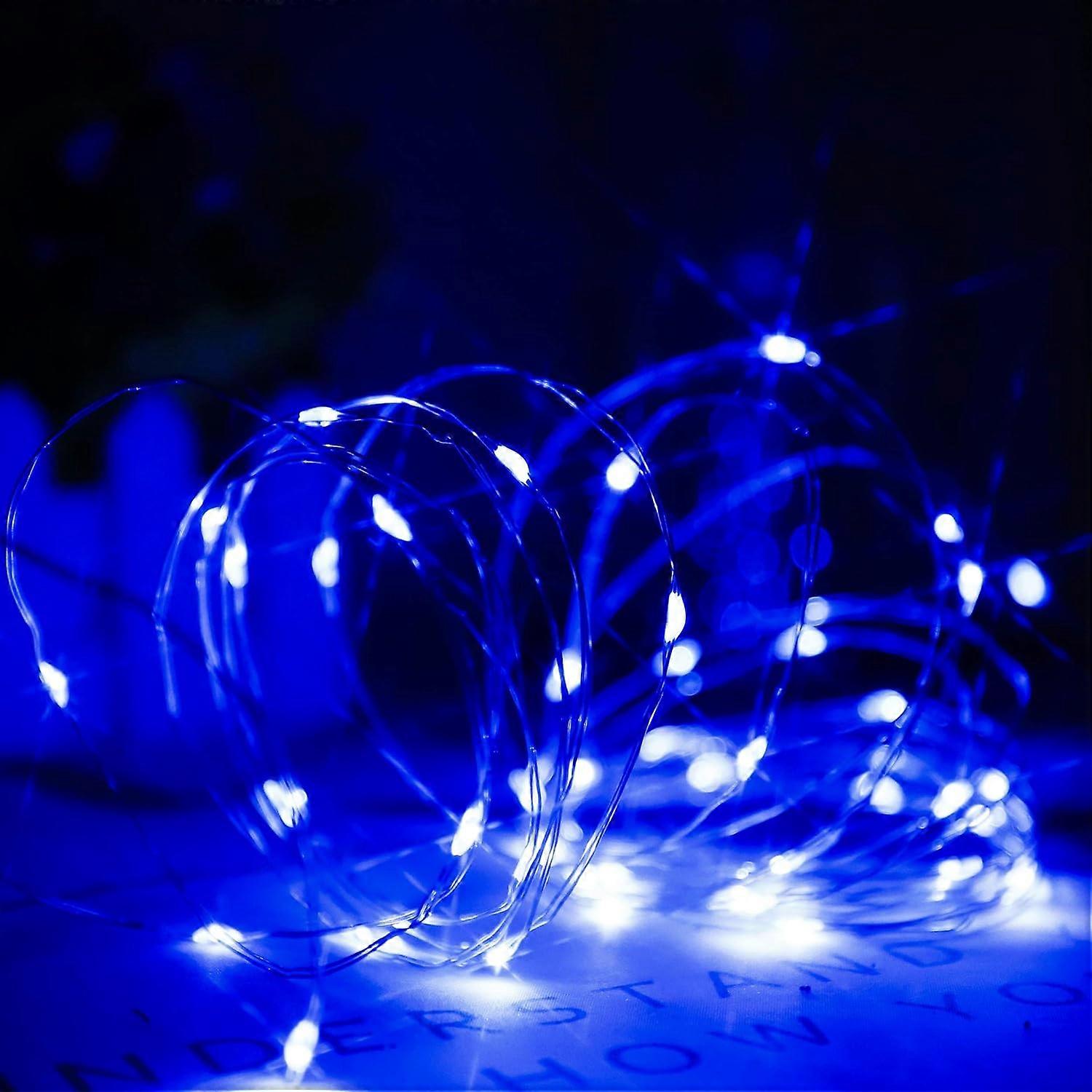 Guirlande Lumineuse LED Bleu, Piles, 50 Micro Lumires LED pour Mariage, Fte, Nol, Maison, Intrieur Extrieur, Fil de Cuivre, Minuterie ON OFF, 5m