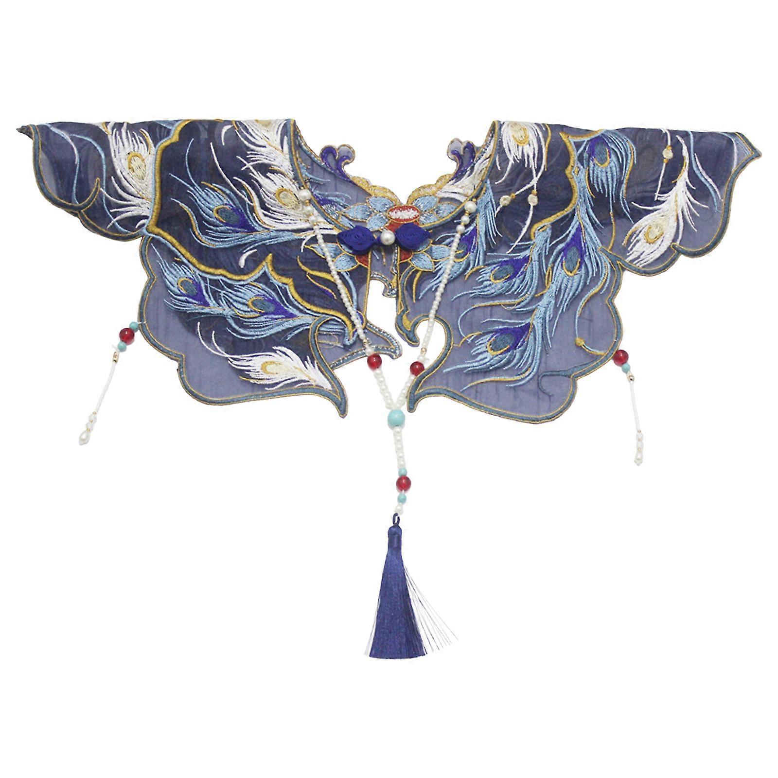 Chinese Embroidered Pearl Decorative Collar for Girl Sweater Dress Clothes Cloud Shoulder with Fringes Sewing Applique ocean blue