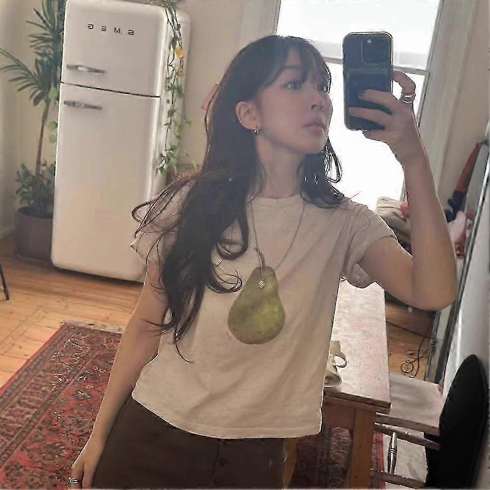 Handong Gate Summer Flet*A Casual Green Pear Fruit Printed Loose So...