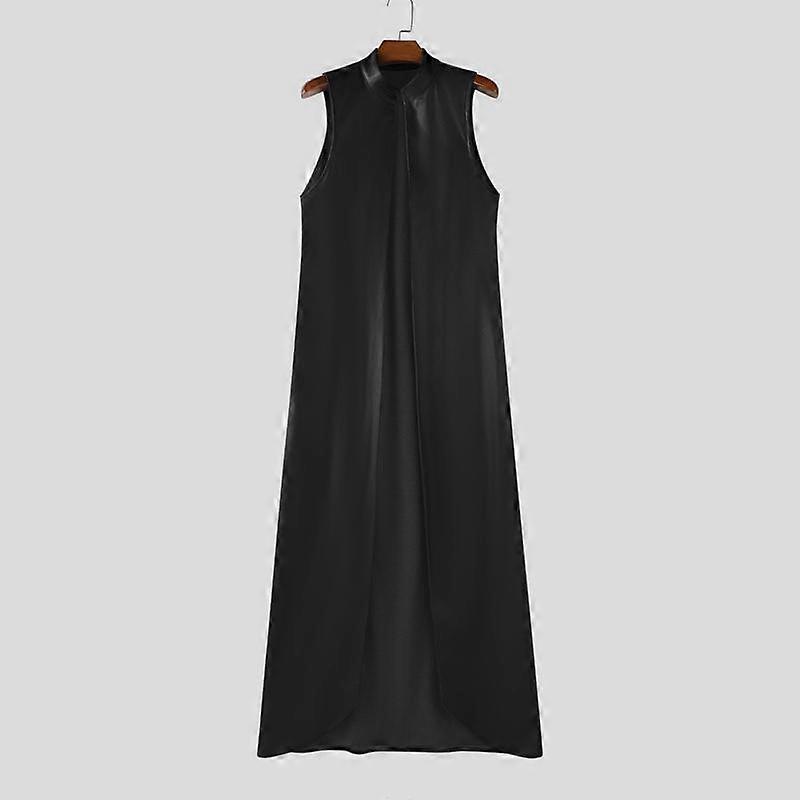 INCERUN Men Stand Collar Sleeveless PU Open Front Faux Leather Long Maxi Cardigan Coats