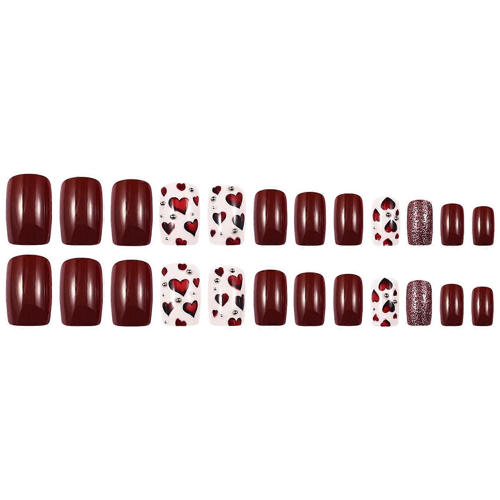 Red Hearts Valentine's Day Nail Art 24PCS Nail Tips Finished Wearable Nails False Nails Wearable Nail Patches Features: Red Hearts Valentine's Day Theme: Red hearts nail stickers designed for Valentine's Day, adding a romantic. 24-piece full set: Contains 24 nail stickers to meet the needs of hands and toes. Finished products are to stick: finished nail stickers, no skills required, easy to stick. Wearable false nails: easy to wear, create fashionable nail effects at any . Long-lasting and easy to : fits firmly and is easy to without damaging real nails. Product details: Package Included:24 nail stickers