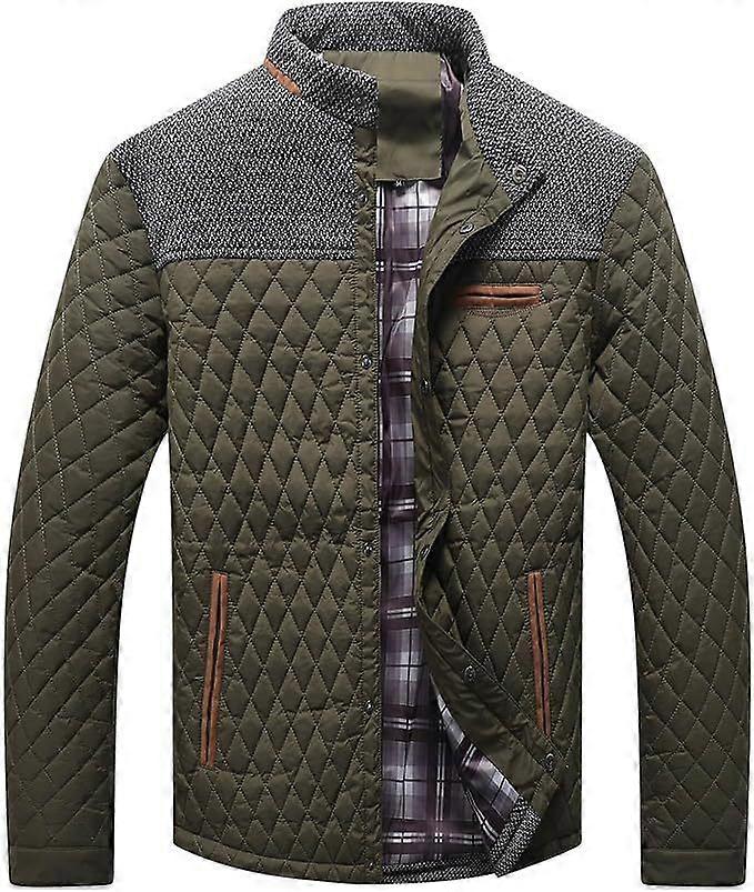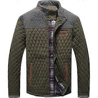 Men's Thickened Cotton Jacket Costume Windproof Outdoor Sport Coat Stand Collar Plaid Pattern Slim Fit